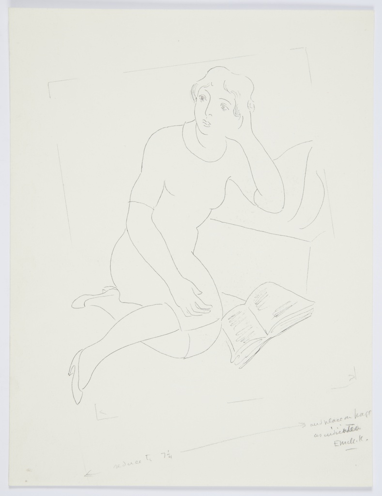 Inscribed in graphite, across bottom of the page: [at left] reduce to 7 1/4; [at right] and place on half / as indicated / EMcK.K.