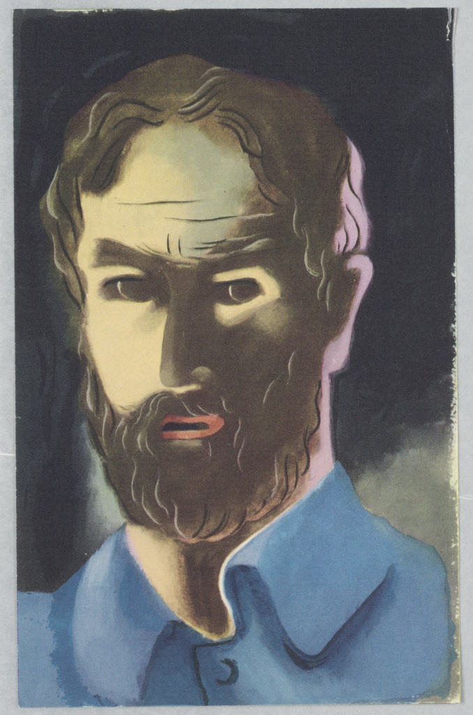 This is a Print. It was designed by Edward McKnight Kauffer and written by William Henry Hudson and published by Random House. It is dated 1944 and we acquired it in 1963. Its medium is lithograph on paper. It is a part of the Drawings, Prints, and Graphic Design department.