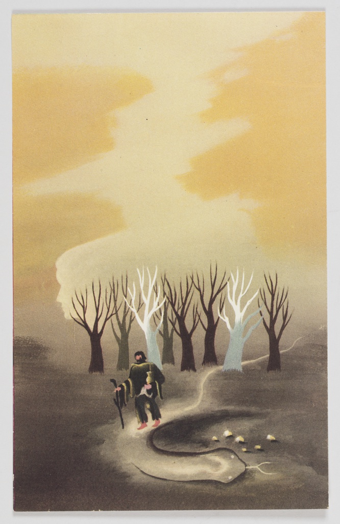 This is a Print. It was designed by Edward McKnight Kauffer and written by William Henry Hudson and published by Random House. It is dated 1944 and we acquired it in 1963. Its medium is lithograph on paper. It is a part of the Drawings, Prints, and Graphic Design department.