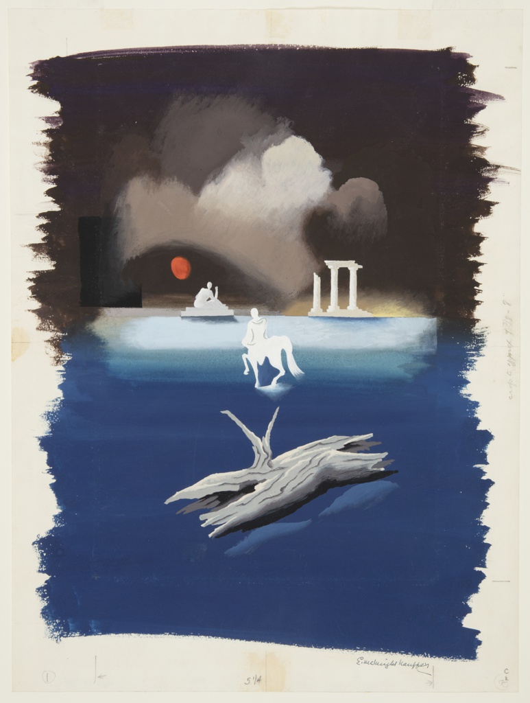 Drawing, Illustration for The Complete Poems and Stories of Edgar Allan Poe; Designed by Edward McKnight Kauffer (American, active England, 1890–1954); Written by Edgar Allan Poe; Published by Alfred A. Knopf; USA; brush and gouache on paper; 40.3 × 30 cm (15 7/8 × 11 13/16 in.); Gift of Mrs. E. McKnight Kauffer; 1963-39-441