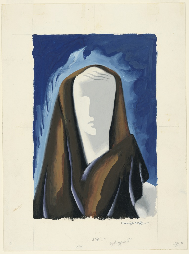 Drawing, Illustration for The Complete Poems and Stories of Edgar Allan Poe; Designed by Edward McKnight Kauffer (American, active England, 1890–1954); Written by Edgar Allan Poe; Published by Alfred A. Knopf; USA; brush and gouache on paper; 40.6 × 30.3 cm (16 × 11 15/16 in.); Gift of Mrs. E. McKnight Kauffer; 1963-39-444