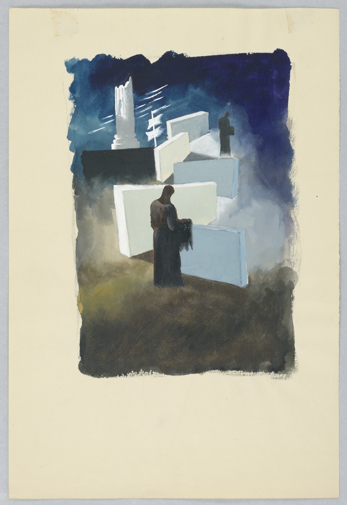 Drawing, Study for The Complete Poems and Stories of Edgar Allan Poe; Designed by Edward McKnight Kauffer (American, active England, 1890–1954); Written by Edgar Allan Poe; Published by Alfred A. Knopf; USA; brush and gouache on paper; 38.4 × 25.8 cm (15 1/8 × 10 3/16 in.); Gift of Mrs. E. McKnight Kauffer; 1963-39-463