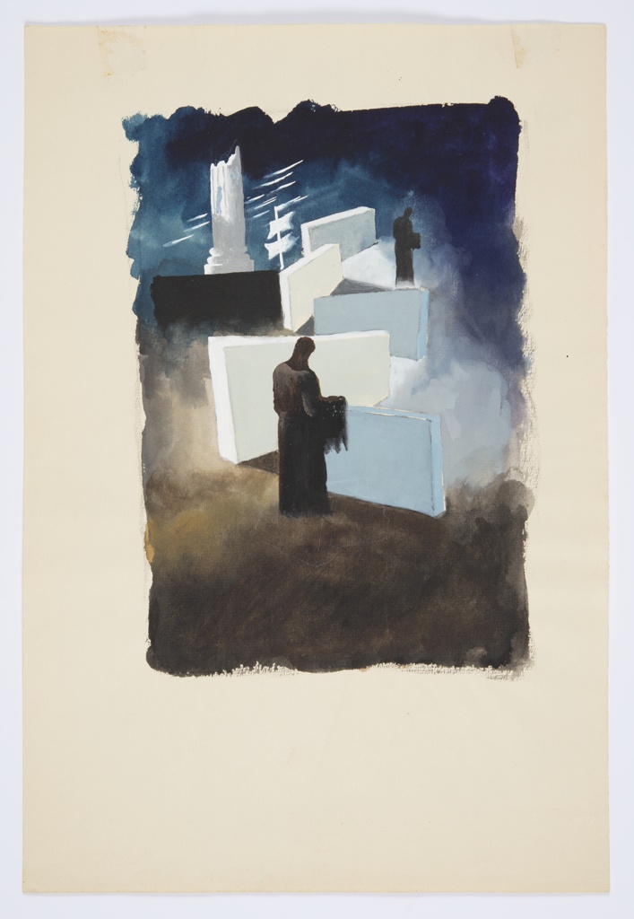 Drawing, Study for The Complete Poems and Stories of Edgar Allan Poe; Designed by Edward McKnight Kauffer (American, active England, 1890–1954); Written by Edgar Allan Poe; Published by Alfred A. Knopf; USA; brush and gouache on paper; 38.4 × 25.8 cm (15 1/8 × 10 3/16 in.); Gift of Mrs. E. McKnight Kauffer; 1963-39-463