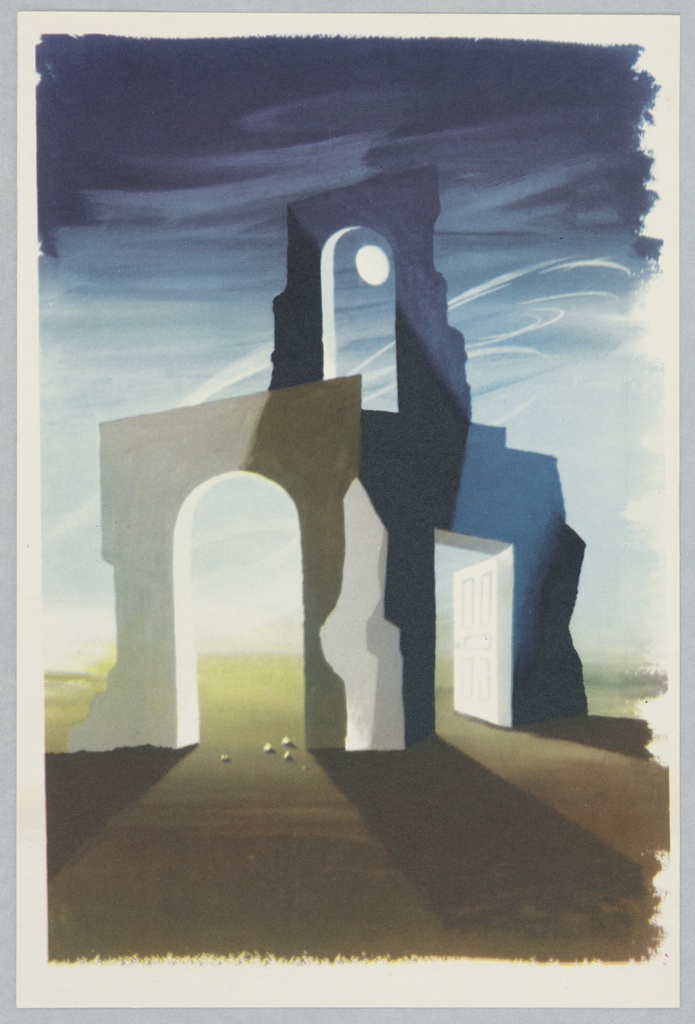 This is a Print. It was designed by Edward McKnight Kauffer and written by Edgar Allan Poe and published by Alfred A. Knopf. It is dated 1946 and we acquired it in 1963. Its medium is lithograph on paper. It is a part of the Drawings, Prints, and Graphic Design department.