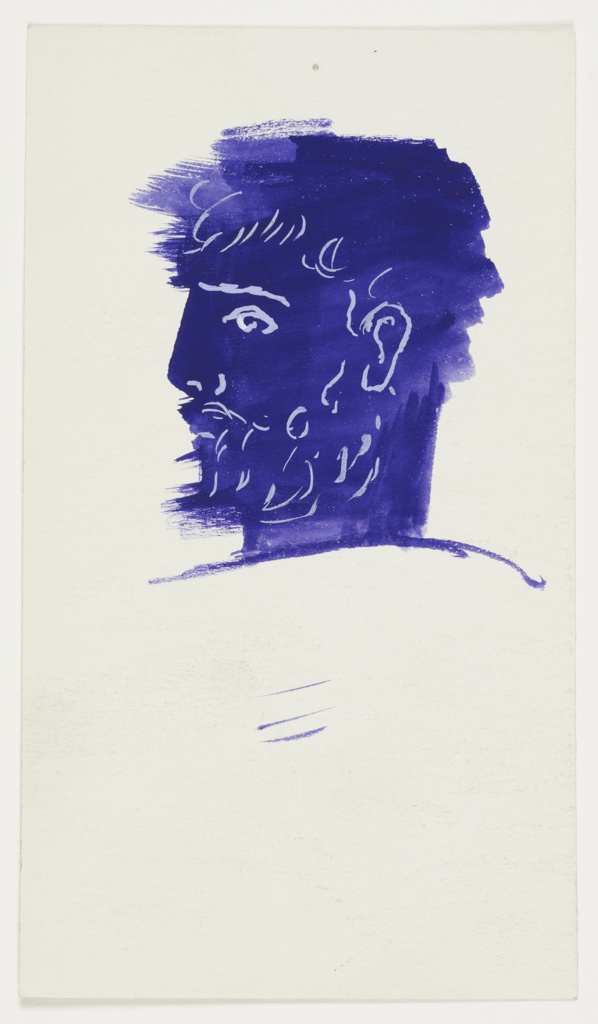 Drawing, Study for On The Iliad; Designed by Edward McKnight Kauffer (American, active England, 1890–1954); Written by Rachel Bespaloff (Ukrainian, b. Bulgaria, 1895–1949), Mary Therese McCarthy (American, 1912–1989); Published by Pantheon (United States); USA; brush and purple gouache on paper; 14 × 7.9 cm (5 1/2 × 3 1/8 in.); Gift of Mrs. E. McKnight Kauffer; 1963-39-627