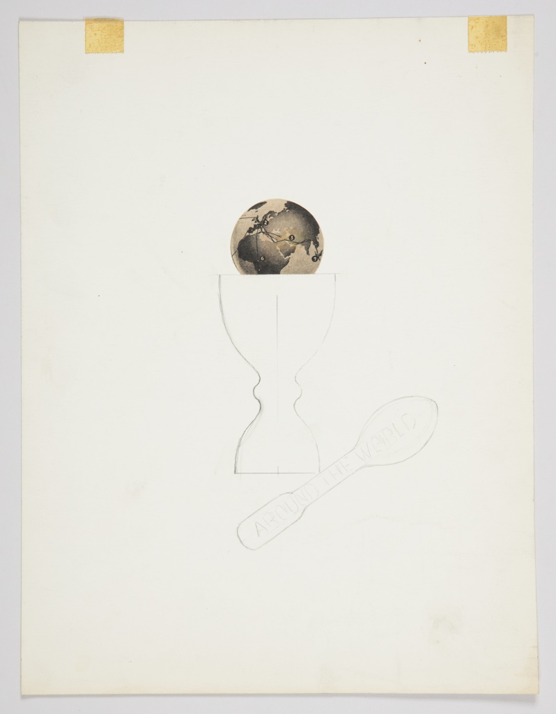 Drawing, Study for an Advertisement, British Airways; Designed by Edward McKnight Kauffer (American, active England, 1890–1954); Client: British Airways; USA; collaged newsprint, graphite on paper; 33.2 × 25.5 cm (13 1/16 × 10 1/16 in.); Gift of Mrs. E. McKnight Kauffer; 1963-39-681