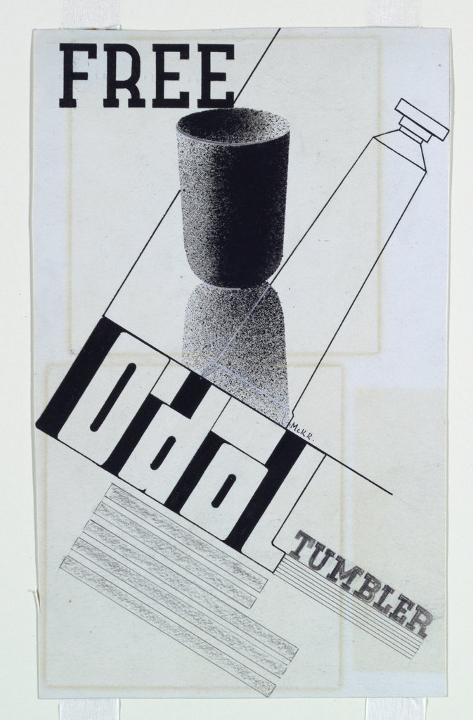 This is a Drawing. It was designed by Edward McKnight Kauffer and made for (as the client) Lyons. It is dated November 19,1931 and we acquired it in 1963. Its medium is graphite, airbrush and black watercolor, brush and black and white gouache on paper. It is a part of the Drawings, Prints, and Graphic Design department.