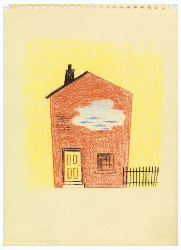 Drawing, Study of a Brick House; Designed by Edward McKnight Kauffer (American, active England, 1890–1954); USA; color crayon on paper; 17.4 × 12.5 cm (6 7/8 × 4 15/16 in.); Gift of Mrs. E. McKnight Kauffer; 1963-39-766