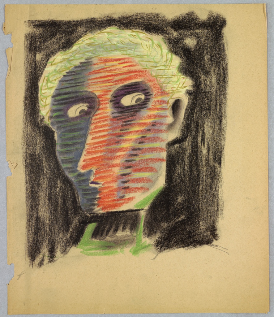 Drawing, Study for an Abstract Face; Designed by Edward McKnight Kauffer (American, active England, 1890–1954); USA; graphite, pastel on paper; 35.3 × 30 cm (13 7/8 × 11 13/16 in.); Gift of Mrs. E. McKnight Kauffer; 1963-39-791