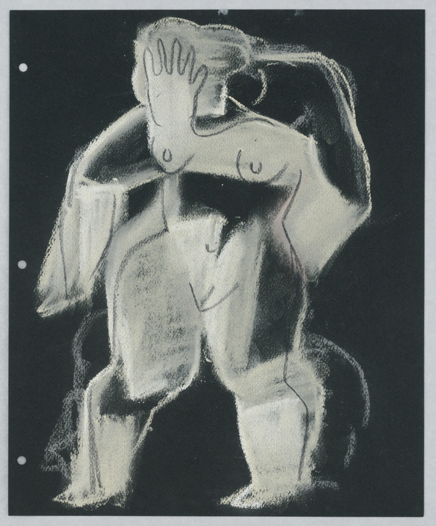 Drawing, Study of Two Embracing Figures; Designed by Edward McKnight Kauffer (American, active England, 1890–1954); USA; white chalk on black paper; 27.9 × 23 cm (11 × 9 1/16 in.); Gift of Mrs. E. McKnight Kauffer; 1963-39-842
