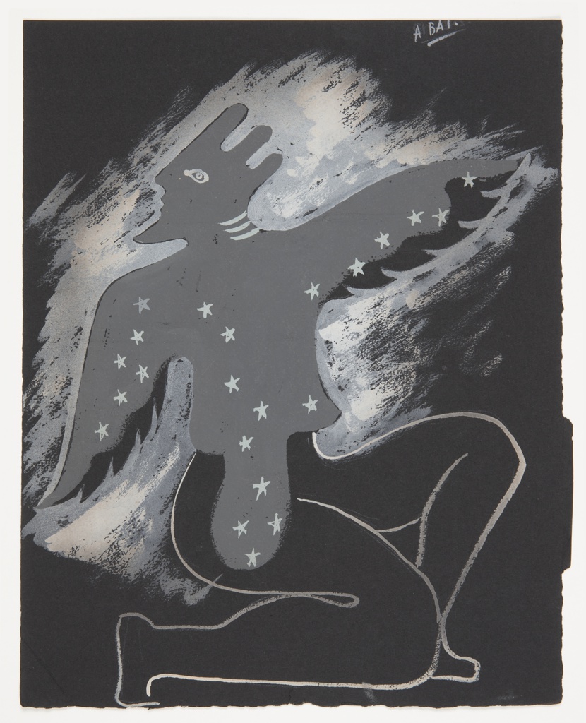 Inscribed in brush and gray gouache, at upper right: A BAT. [underlined and partially cut off]