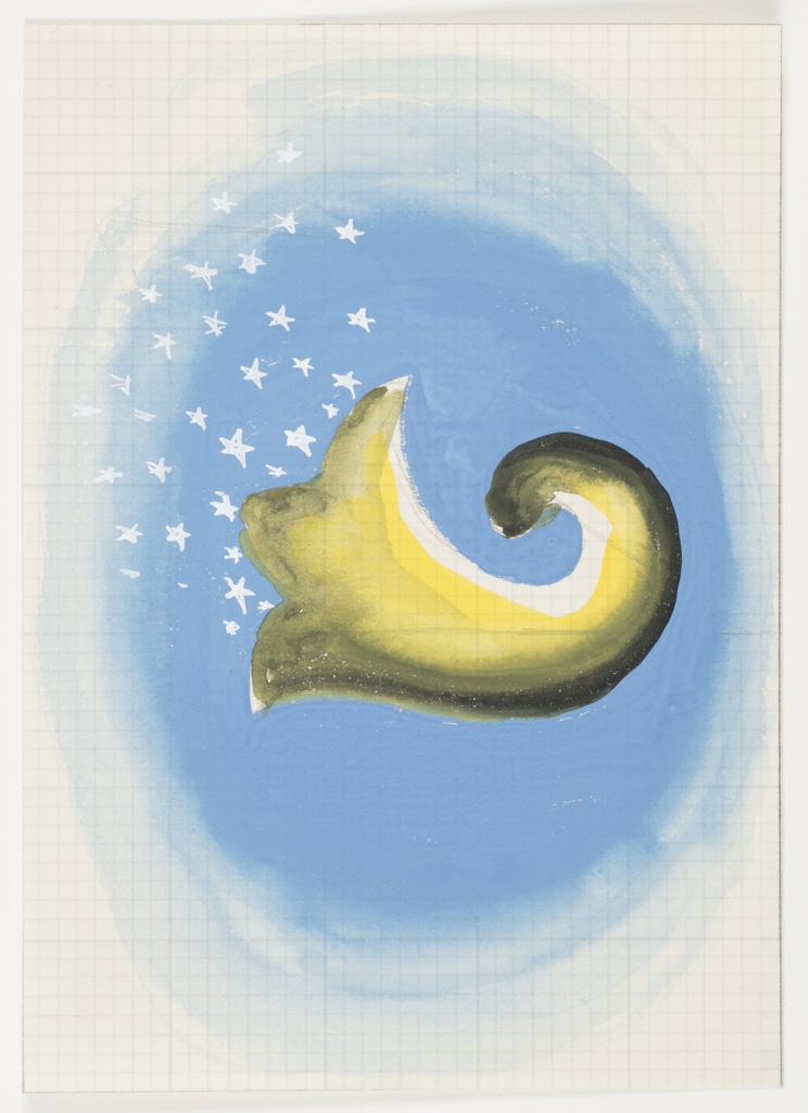 Drawing, Study of an Abstract Motif with Cornucopia; Designed by Edward McKnight Kauffer (American, active England, 1890–1954); USA; brush and gouache on graph paper; 12.5 × 17.5 cm (4 15/16 × 6 7/8 in.); Gift of Mrs. E. McKnight Kauffer; 1963-39-883