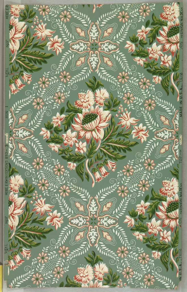 This is a Sidewall. It was created by Hobe Erwin Editions. It is dated ca. 1952 and we acquired it in 1964. Its medium is machine-printed. It is a part of the Wallcoverings department.