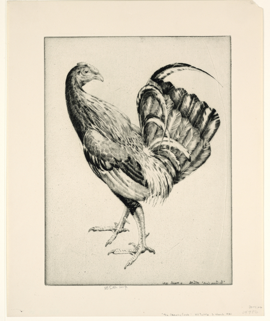 Print, Game Cock (Carney Cock); USA; drypoint; Platemark: 29.5 × 22.2 cm (11 5/8 × 8 3/4 in.); 1965-7-1