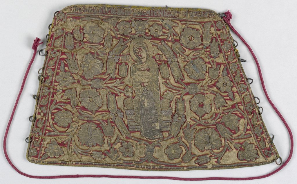 This is a Cuff. It is dated 19th century and we acquired it in 1966. Its medium is silk, linen, metal and its technique is satin embroidery stitch. It is a part of the Textiles department.