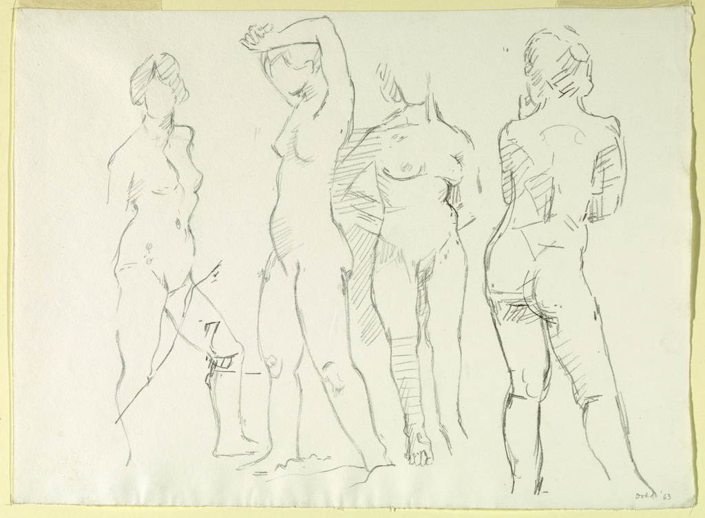 Drawing, Figures; Lois Dodd, American, b. 1927; USA; graphite on paper; 39.4 × 28.9 cm (15 1/2 × 11 3/8 in.); Gift of Lois Dodd; 1967-13-23