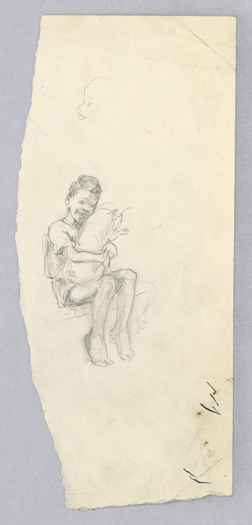 Drawing, Sketch of Young Boy Holding Pig in Lap; Florence Choate (American, 1878–1967); USA; graphite on paper; 22.5 × 10 cm (8 7/8 × 3 15/16 in.); Gift of the Estate of Florence Choate; 1967-27-66