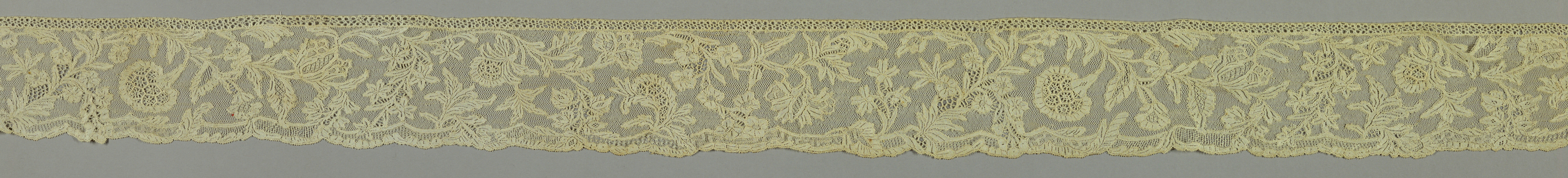This is a Band. It is dated 18th century and we acquired it in 1967. Its medium is linen and its technique is needle lace with ground of loop and twist with twist return. It is a part of the Textiles department.