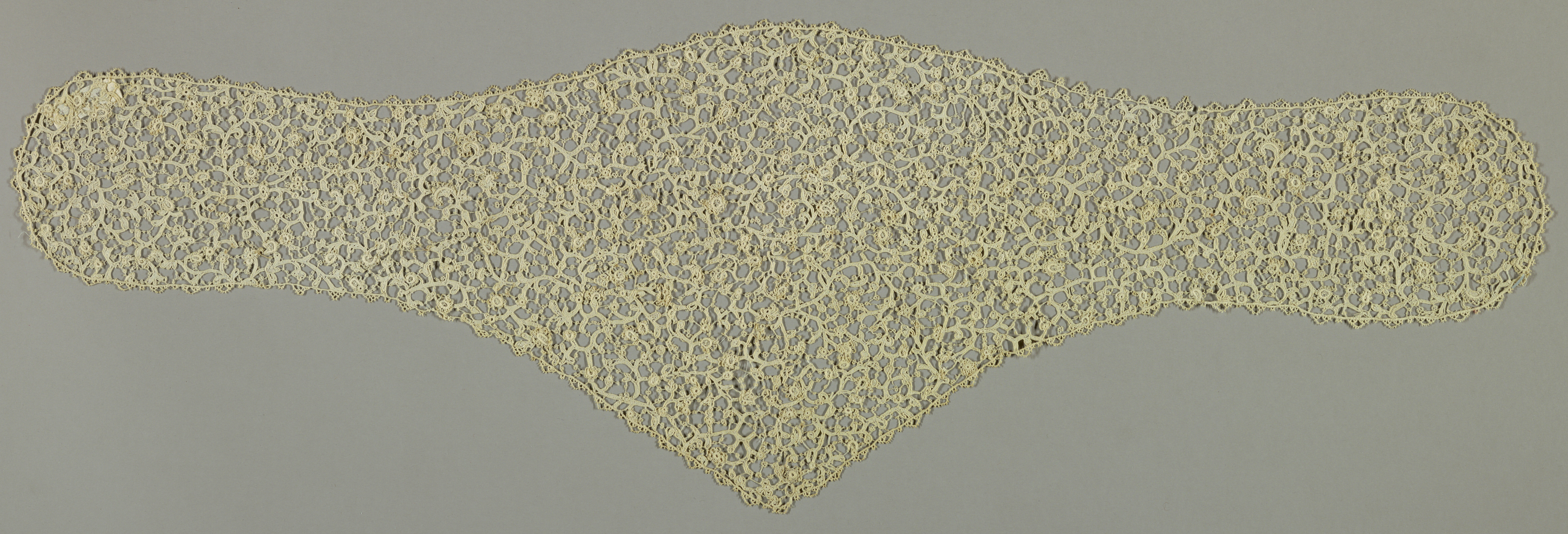 This is a Trimmings. It is dated ca. 1725 and we acquired it in 1967. Its medium is linen and its technique is mid to late 17th c needle lace, commonly called rosaline. It is a part of the Textiles department.