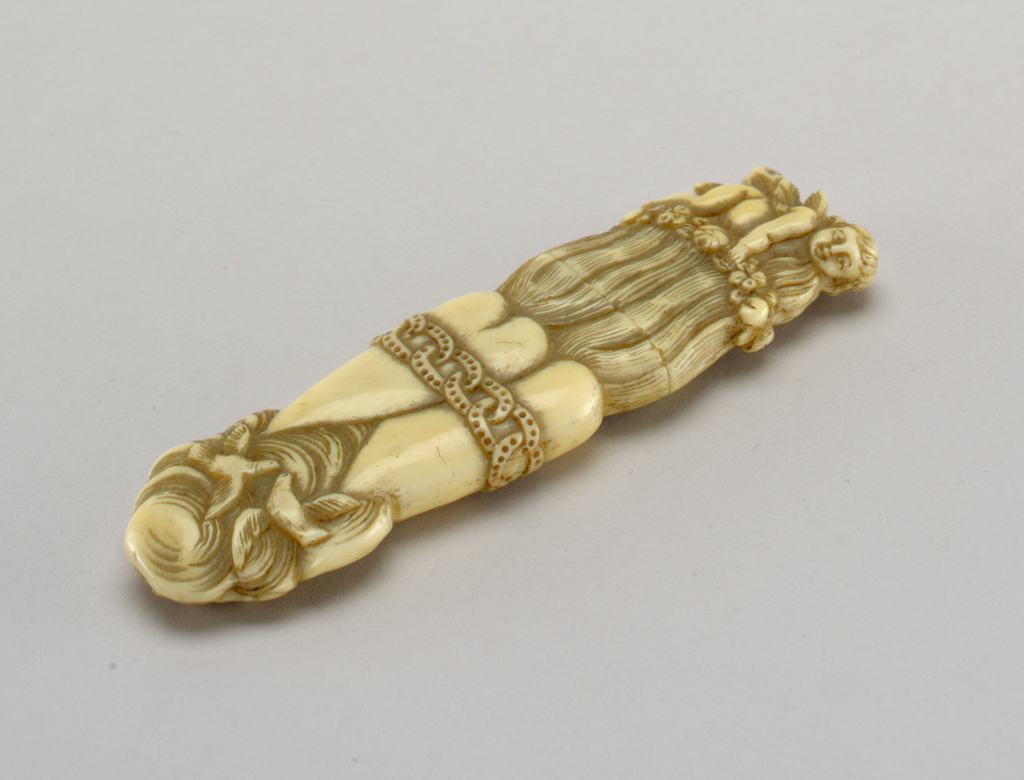 This is a étui. We acquired it in 1967. Its medium is ivory. It is a part of the Product Design and Decorative Arts department.