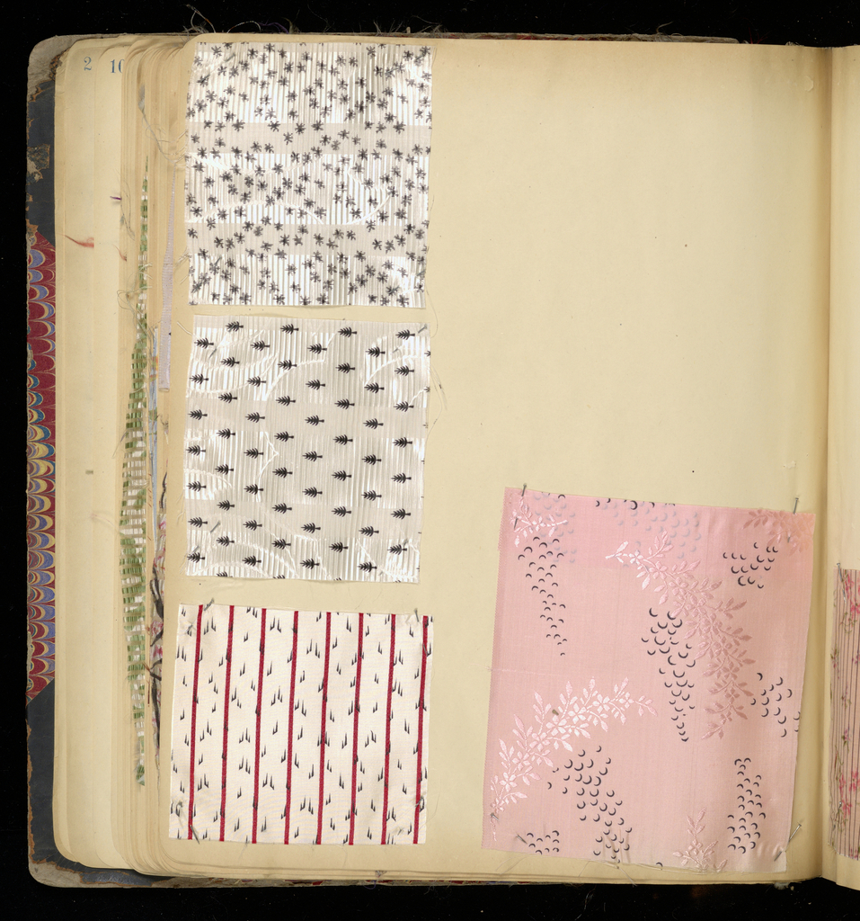 This is a Scrapbook. It is dated 1910–15 and we acquired it in 1967. Its medium is silk and its technique is various weave structures; discharge and warp printing. It is a part of the Textiles department.