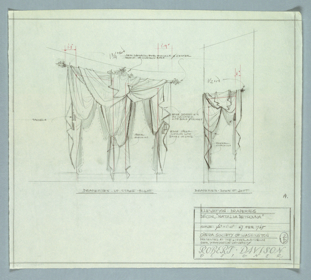 Drawing, Set design: Natalya Petrovna: Elevation of Draperies; Robert Davison; USA; 1967-60-1