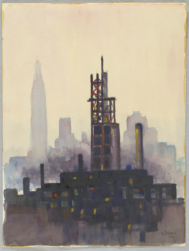 Drawing, New York from Long Island City; Ely Jacques Kahn (American, 1884–1972); USA; brush and watercolor, graphite on paper; 39.4 × 29.2 cm (15 1/2 × 11 1/2 in.); 1967-81-12