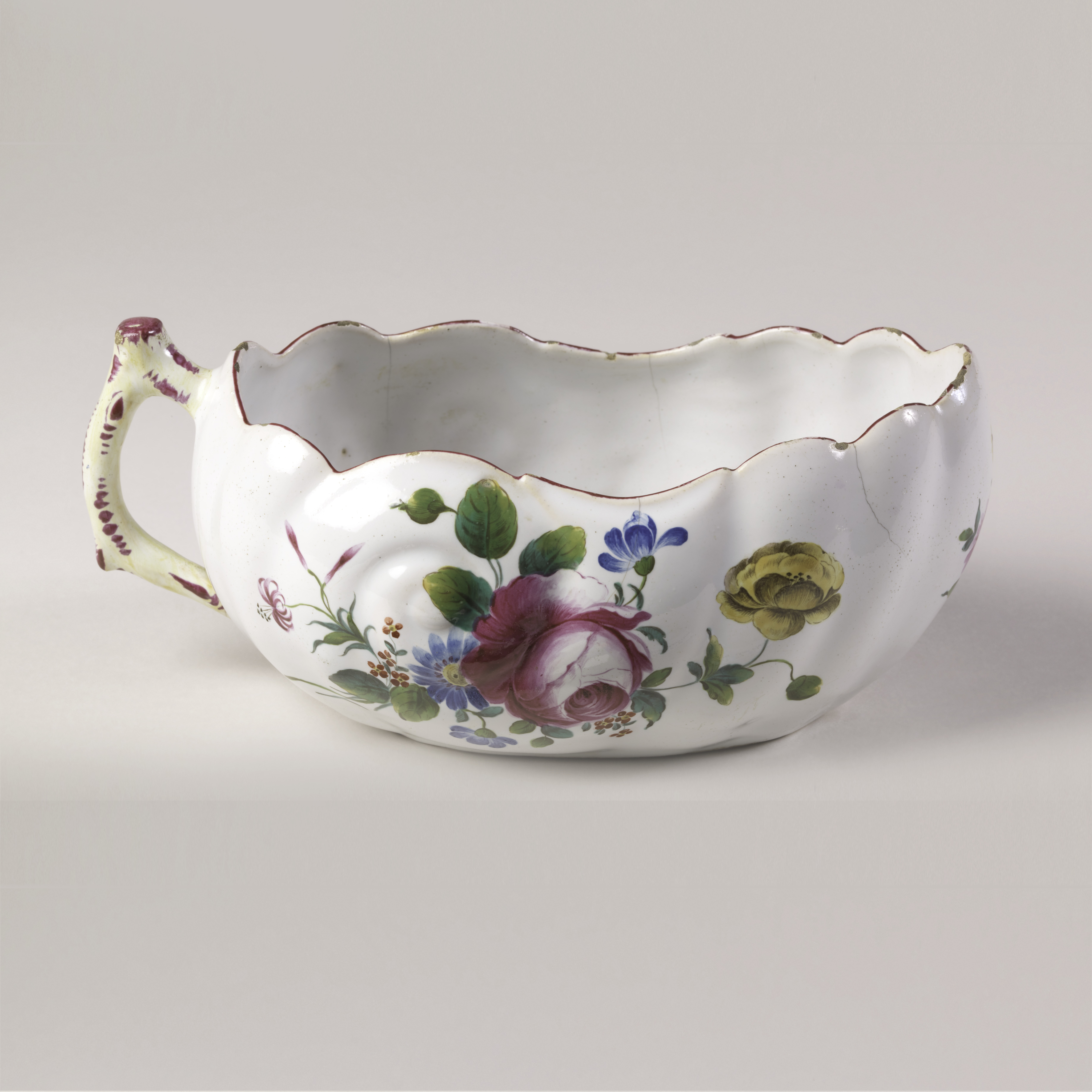 Bourdalou; tin-glazed earthenware; H x W x D: 9 × 21.3 × 13.1 cm (3 9/16 × 8 3/8 × 5 3/16 in.); Gift of Mr. and Mrs. Maxime Hermanos; 1967-84-5