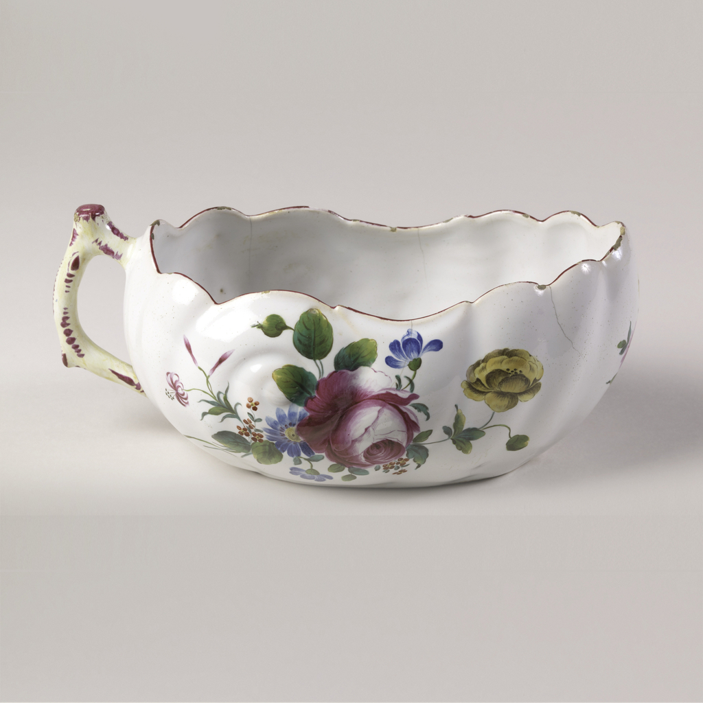 This is a Bourdalou. It is dated ca. 1775 and we acquired it in 1967. Its medium is tin-glazed earthenware. It is a part of the Product Design and Decorative Arts department.