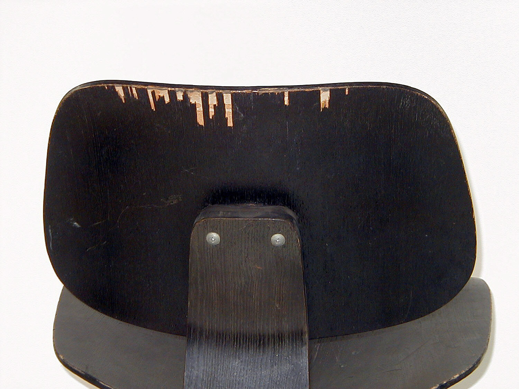 This is a chair. It was designed by Charles Eames and Ray Kaiser Eames and manufactured by Herman Miller Furniture Company. It is dated ca. 1946 and we acquired it in 1967. Its medium is bent, ebonized, laminated plywood, metal (screws). It is a part of the Product Design and Decorative Arts department.