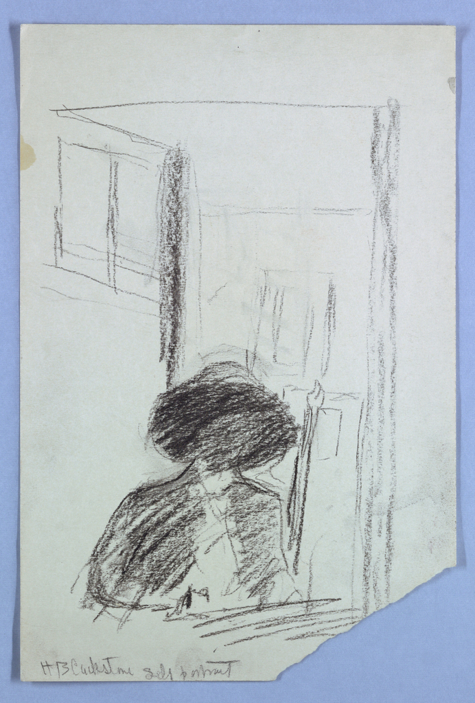 Inscribed in black pastel crayon, lower left: Harriet Blackstone self-portrait