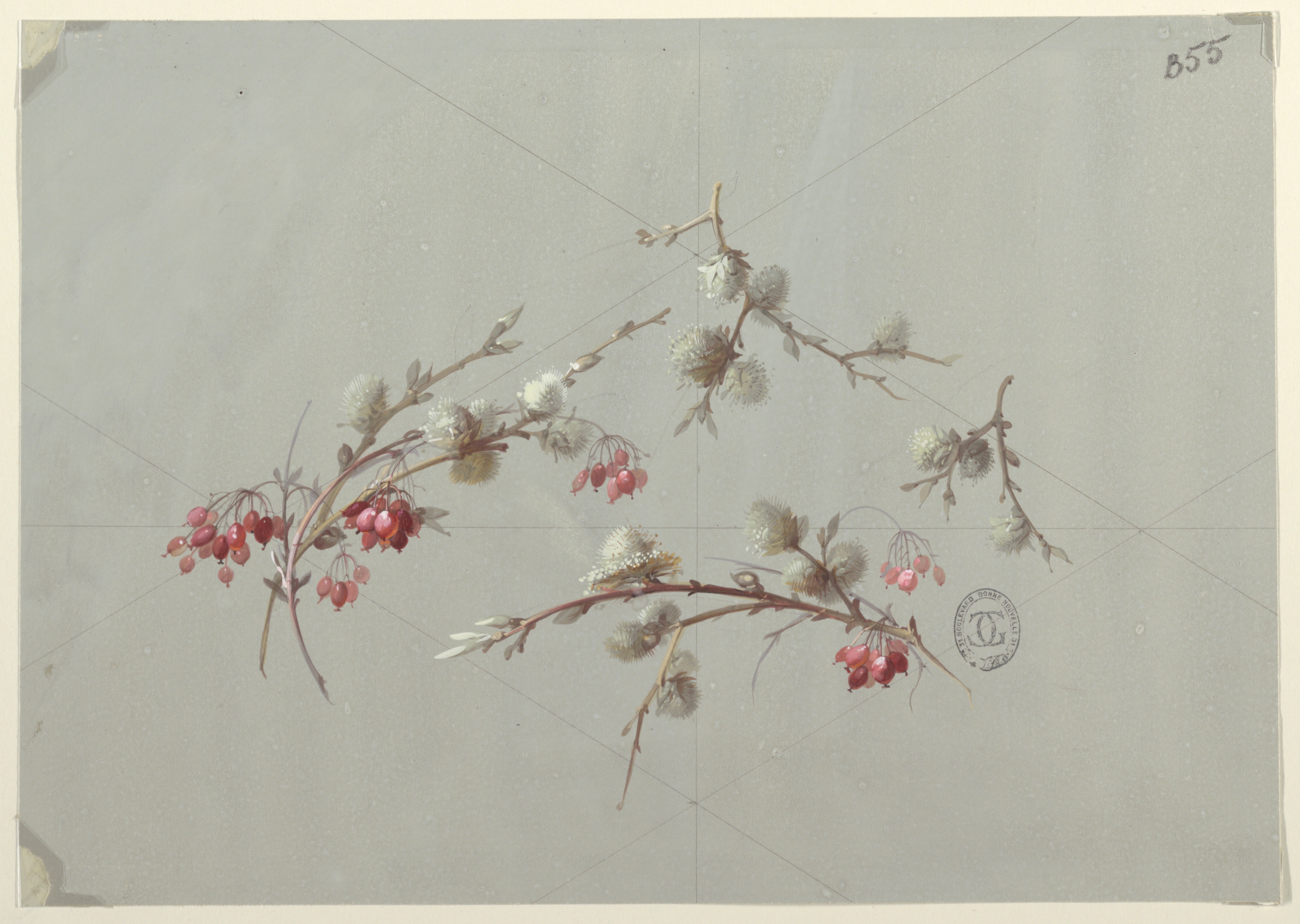 Drawing, Designs for Wallpaper and Textiles: Flowers; France; brush and gouache, graphite on cream paper; 26.8 x 37.9 cm (10 9/16 x 14 15/16 in.); Gift of Harvey Smith; 1968-107-53