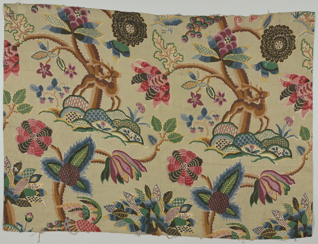 This is a Textile. It is dated 1920–30 and we acquired it in 1968. Its medium is linen and its technique is block printed on plain weave. It is a part of the Textiles department.