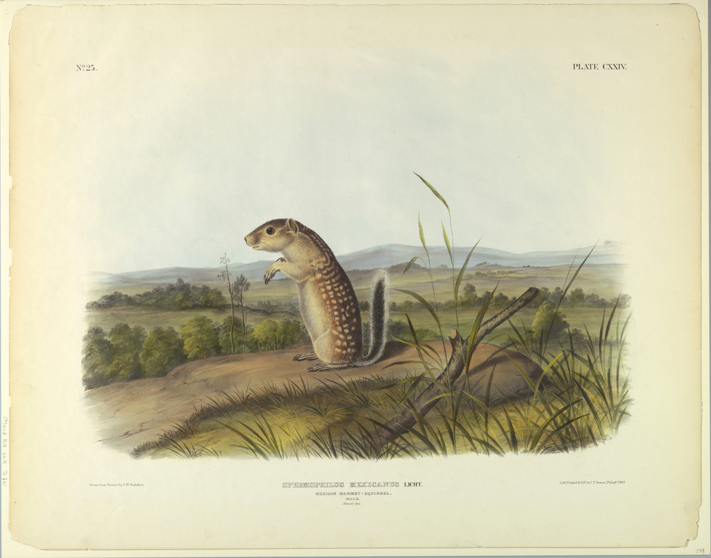 Print, Mexican Marmot-Squirrel; After John James Audubon (1780 – 1851); Printed by J.T. Bowen (American, 1801 - 1856); USA; hand-colored lithograph on wove paper; 1968-64-8