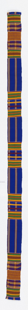 Strip (Ghana); silk, rayon or cotton; Warp x Weft: 188 x 9.5 cm (6 ft. 2 in. x 3 3/4 in.); Gift of Mrs Calvin W. Stillman; 1969-11-2-f