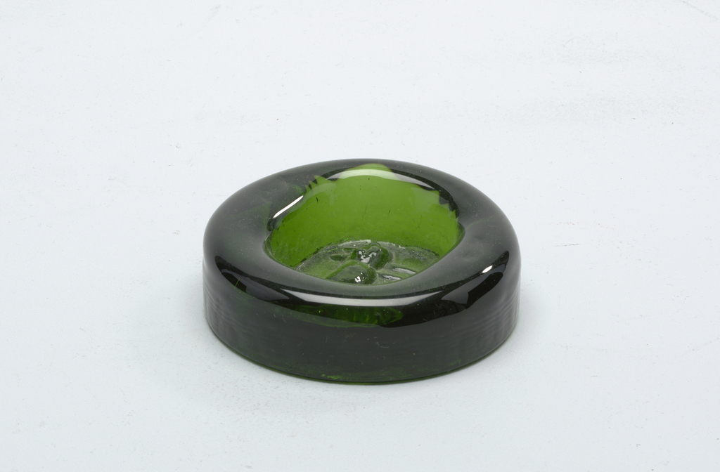This is a ashtray. We acquired it in 1969. Its medium is glass. It is a part of the Product Design and Decorative Arts department.