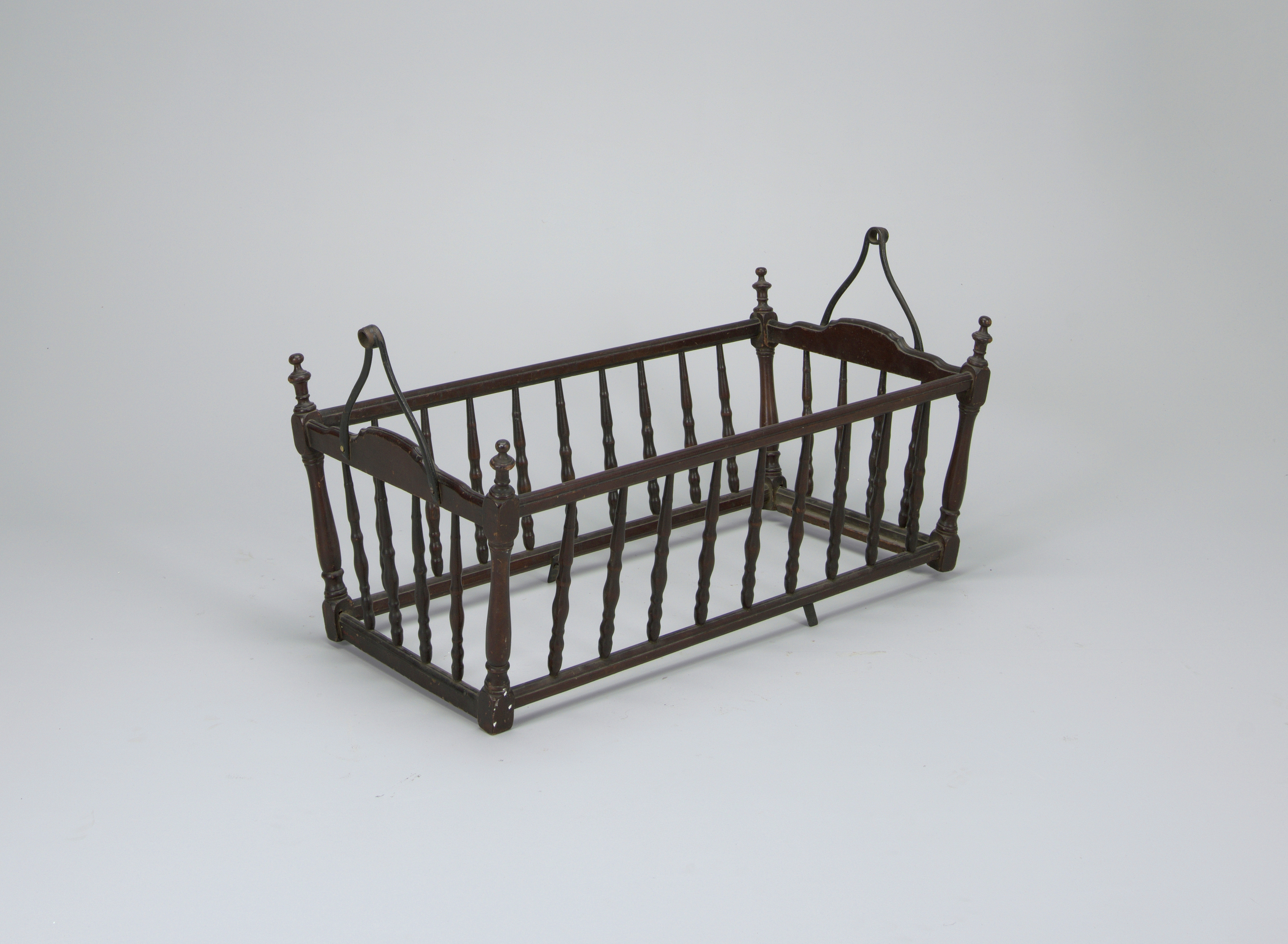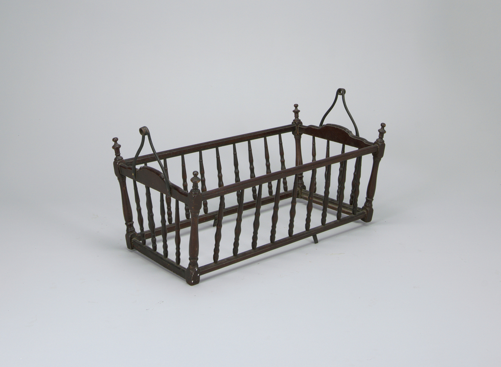 This is a Cradle with stand. It is dated 19th century and we acquired it in 1969. Its medium is wood, metal. It is a part of the Product Design and Decorative Arts department.