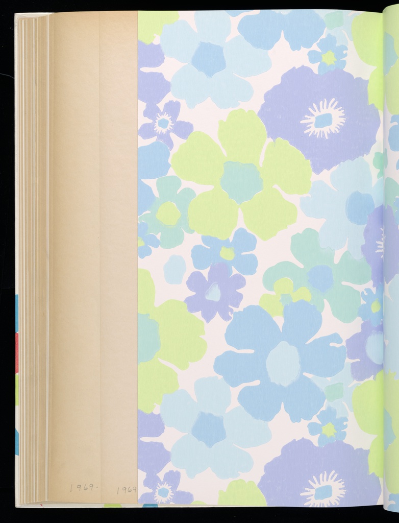 This is a Sample book. It was manufactured by United De Soto. It is dated 1967–68 and we acquired it in 1969. Its medium is screen-printed vinyl. It is a part of the Wallcoverings department.