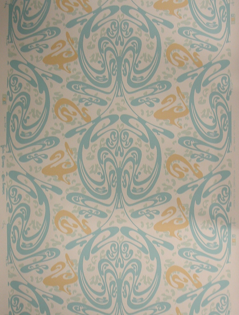This is a Sidewall. It was designed by Larsen Design Corporation and manufactured by Karl Mann Associates and after Hector Guimard. It is dated 1970 and we acquired it in 1971. Its medium is screen printed. It is a part of the Wallcoverings department.
