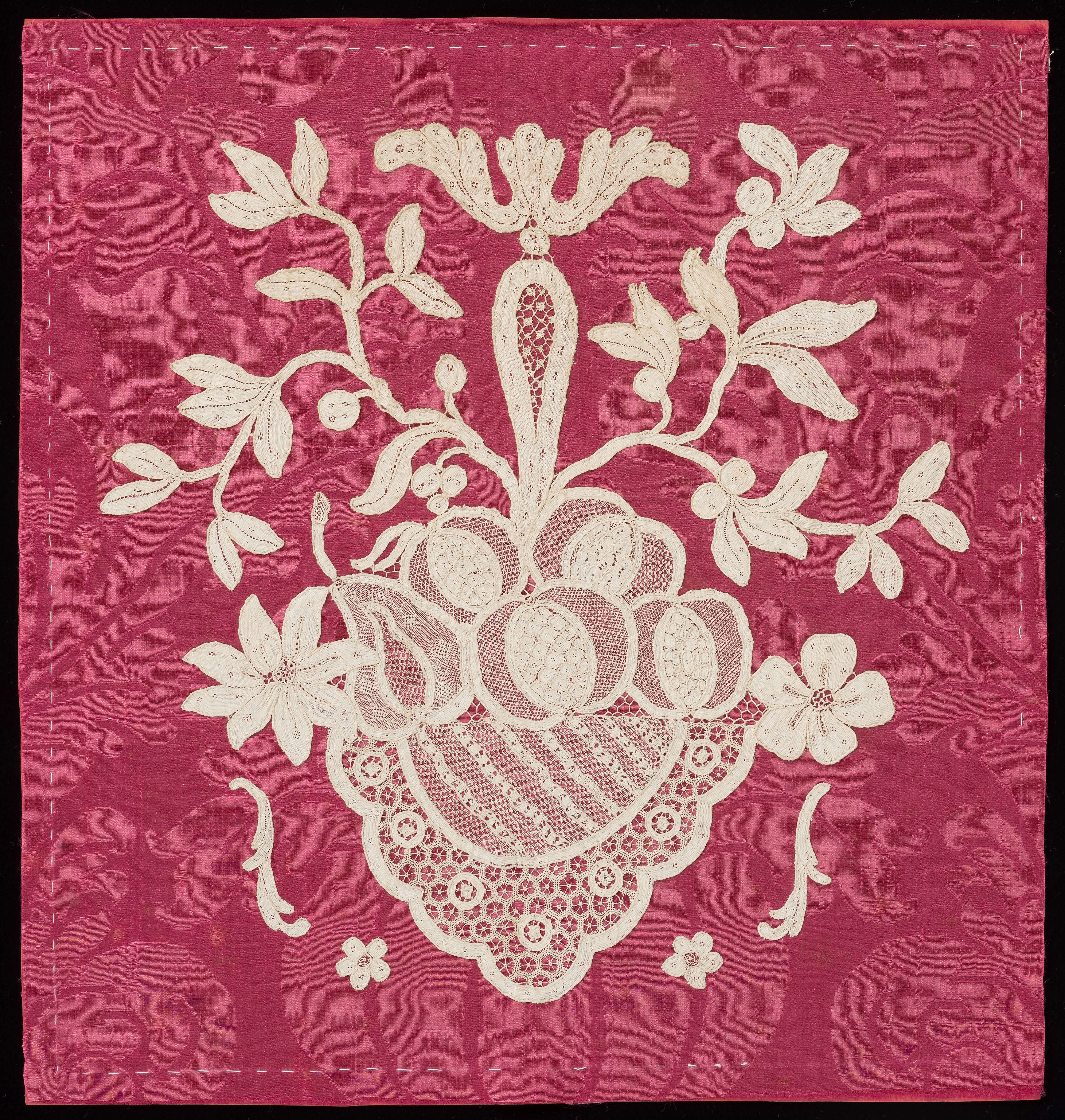 This is a Picture. It is dated 18th century and we acquired it in 1971. Its medium is linen and its technique is early 17th c needle lace. It is a part of the Textiles department.