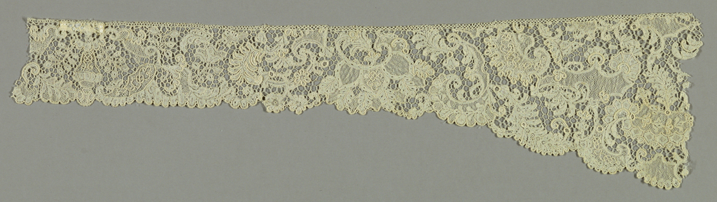 This is a Fragment. It is dated early 18th century and we acquired it in 1971. Its medium is natural linen and its technique is needle lace, 6 sided reworked ground. It is a part of the Textiles department.