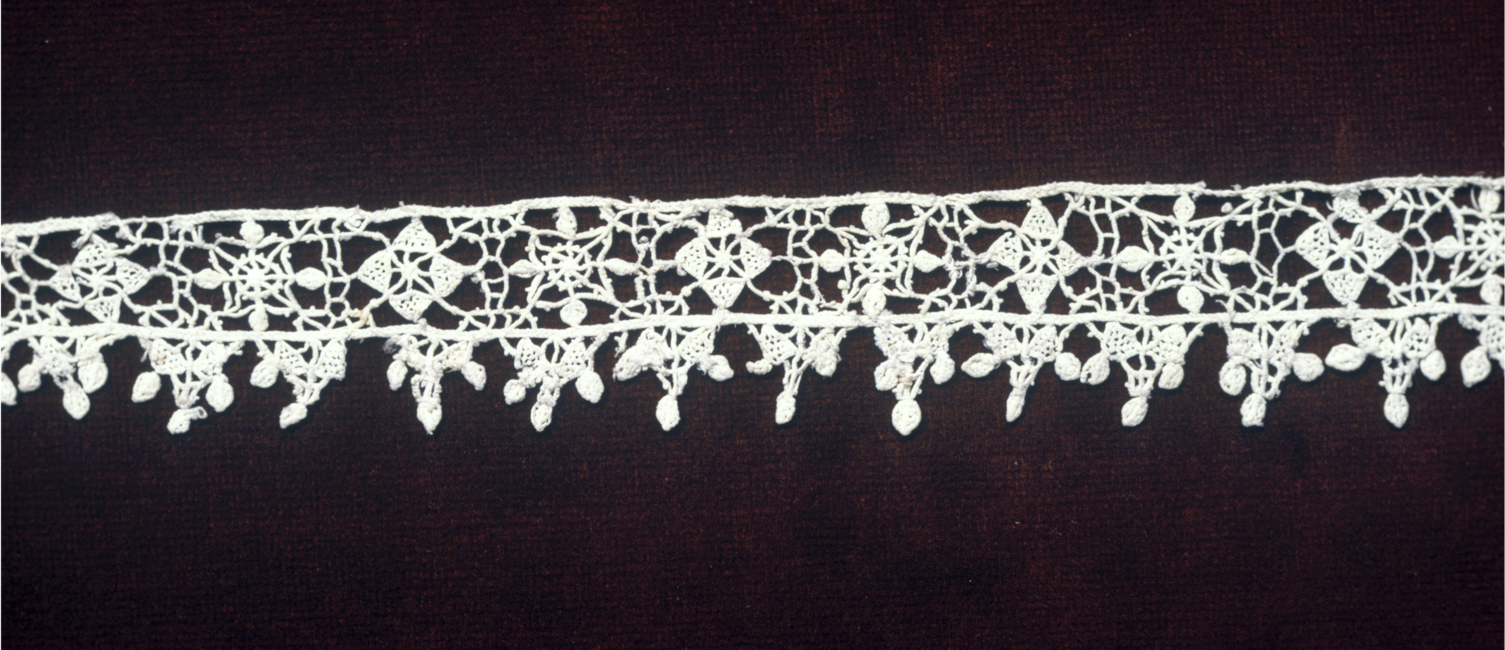 This is a Border. It is dated 16th–17th century and we acquired it in 1971. Its medium is natural linen and its technique is grid of laid cords with needle lace, reticella style; edge of punto in aria. It is a part of the Textiles department.