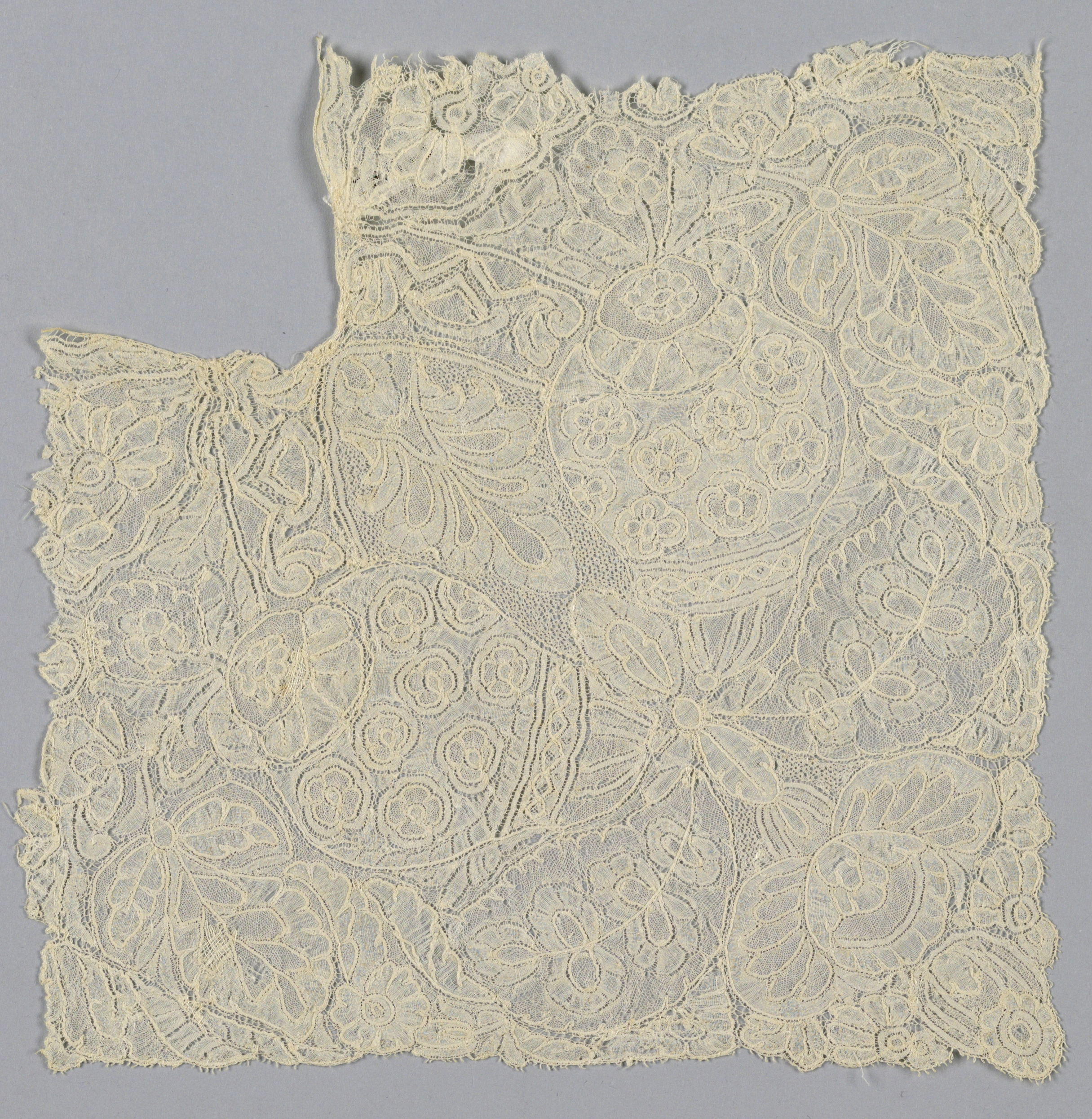 This is a Corner fragment. It is dated 18th century and we acquired it in 1971. Its medium is linen and its technique is brussels style bobbin lace. It is a part of the Textiles department.