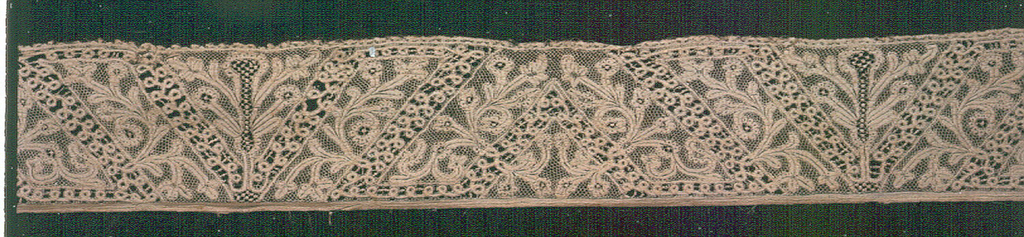 This is a Fragment. It is dated 17th century and we acquired it in 1971. Its medium is linen and its technique is bobbin lace of discontinuous tape. It is a part of the Textiles department.