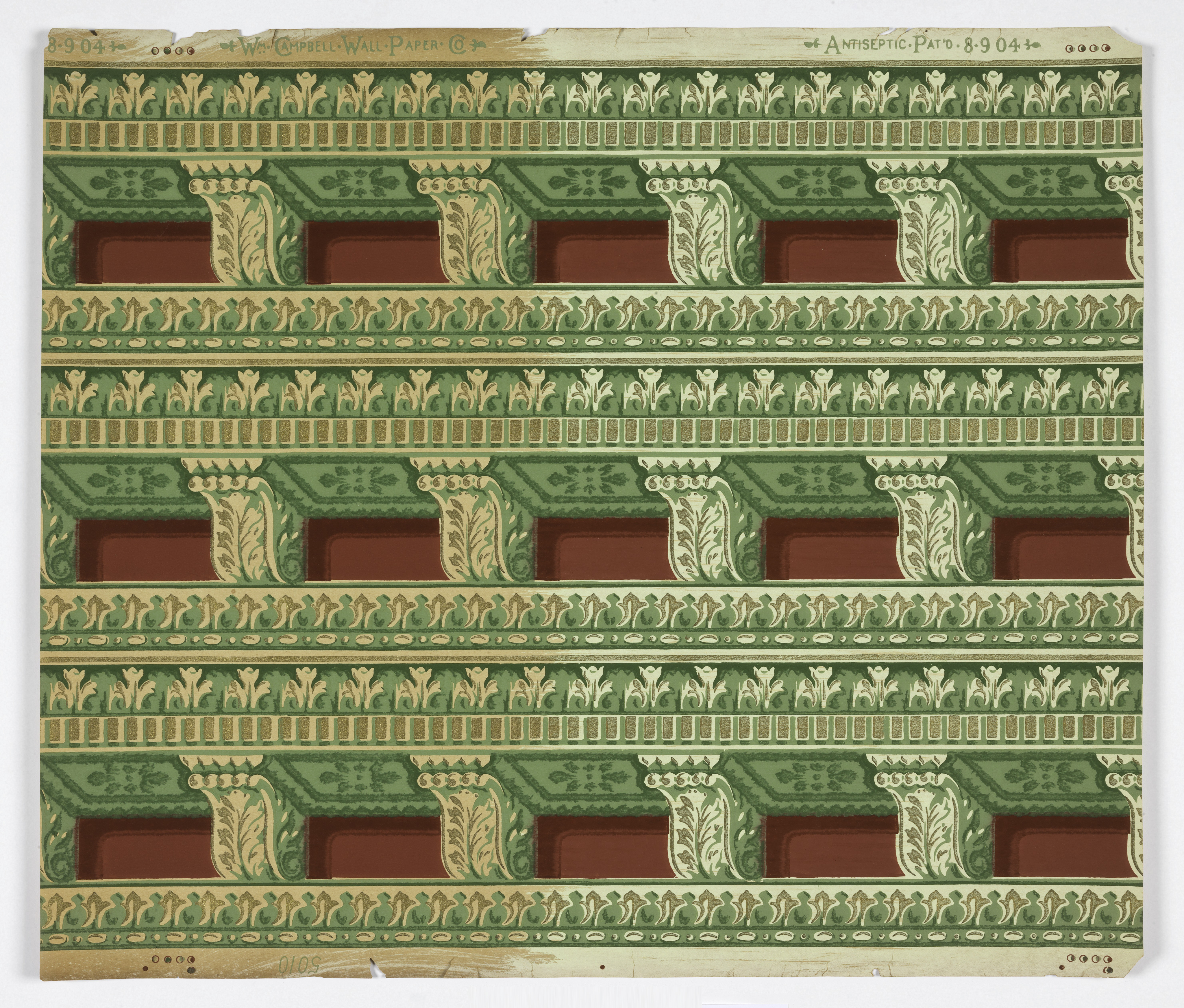 This is a Border. It was made by Wm. Campbell Wall Paper Company. It is dated 1904–15 and we acquired it in 1971. Its medium is machine-printed on paper. It is a part of the Wallcoverings department.