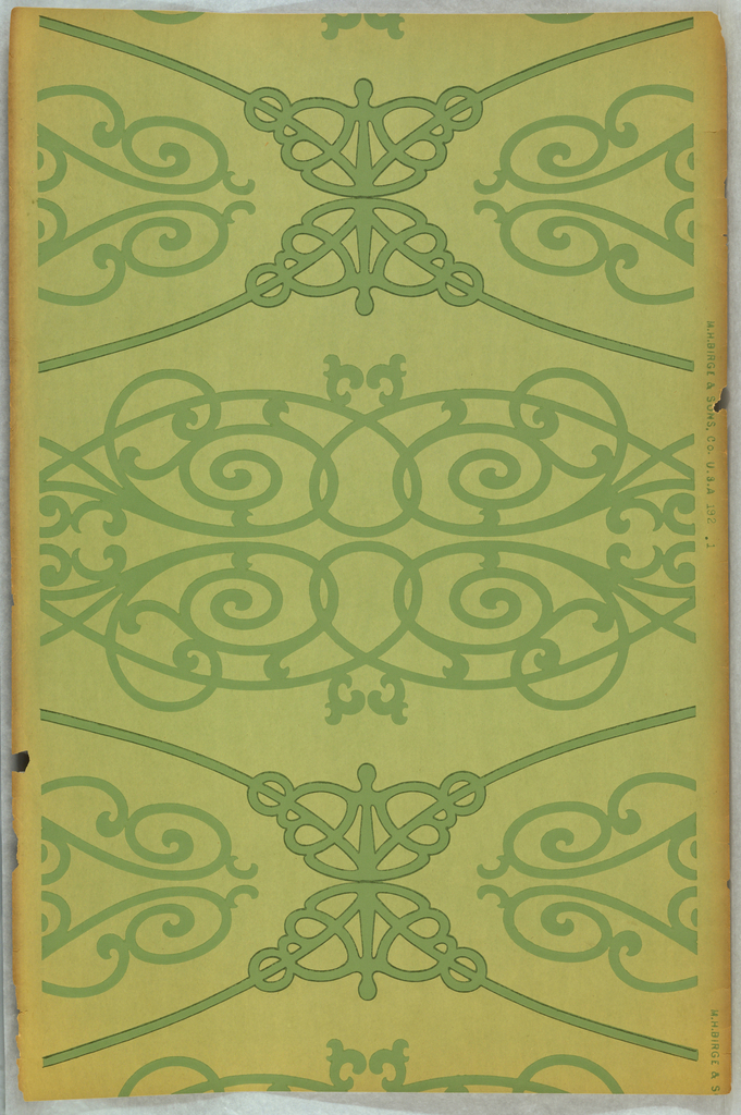 This is a Sidewall. It was manufactured by M.H. Birge & Sons Co.. It is dated 1900–1920 and we acquired it in 1971. Its medium is machine-printed paper. It is a part of the Wallcoverings department.