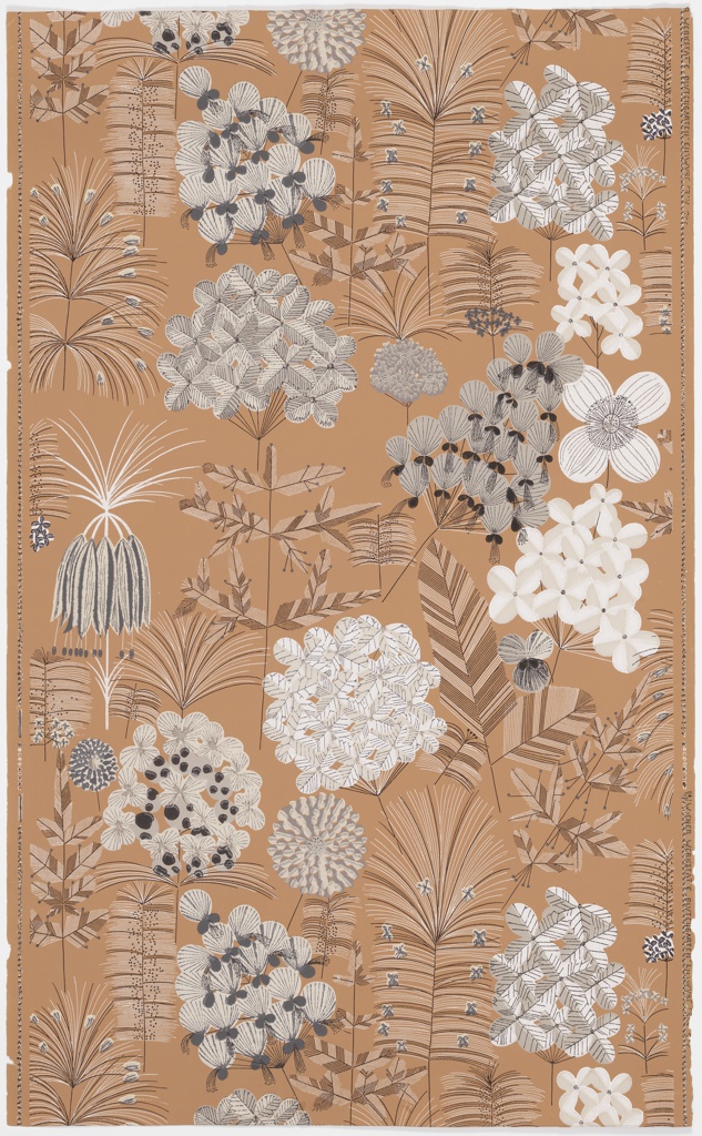 Sidewall, Blutengarten (Blossom Garden); Designed by Felice Rix-Ueno (Austrian, 1893–1967, active Japan 1935–1967); Manufactured by Salubra-Werke A.G.; Made for Wiener Werkstätte (Austria); possibly Austria; machine printed on machine-made paper; H x W (a): 122.5 x 75 cm (48 1/4 x 29 1/2 in.); Gift of Harrison Cultra; 1971-62-5-a/e