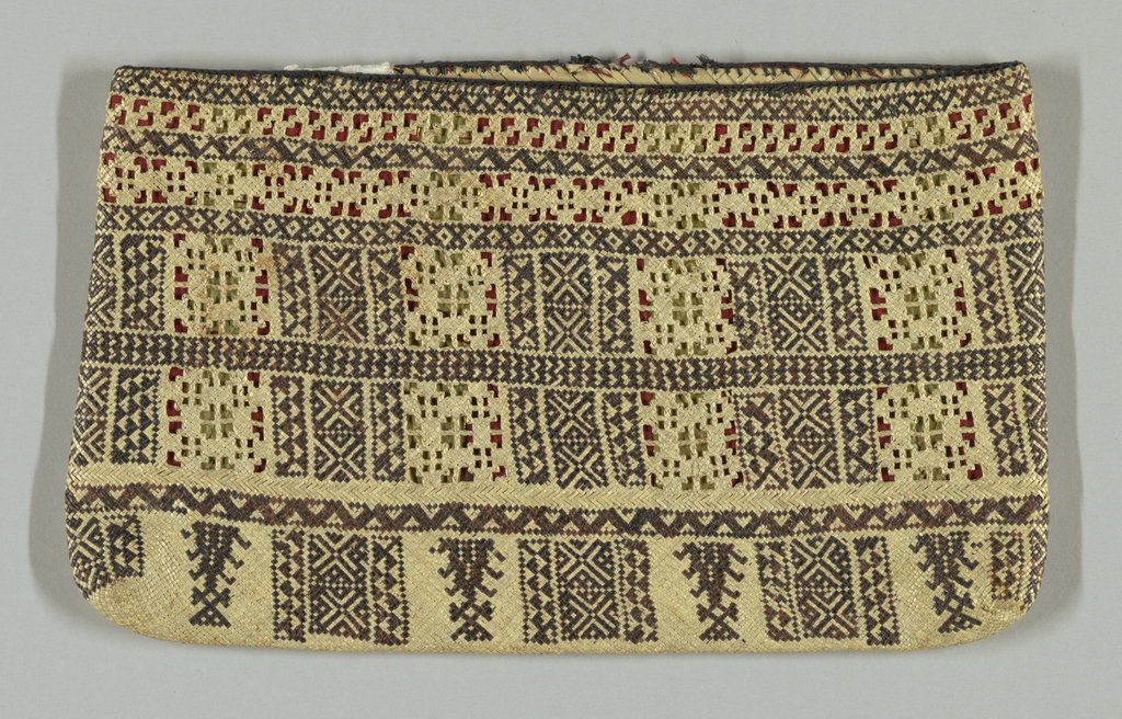 Pouch (Indonesia); plant fiber, cotton, metallic threads; H x W: 16.2 x 26 cm (6 3/8 x 10 1/4 in.); 1972-6-8