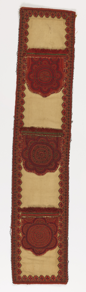 Wall Pocket (Greece); linen, wool, metallic threads, glass beads, sequins; H x W: 138.4 x 29.2 cm (54 1/2 x 11 1/2 in.); 1972-81-8