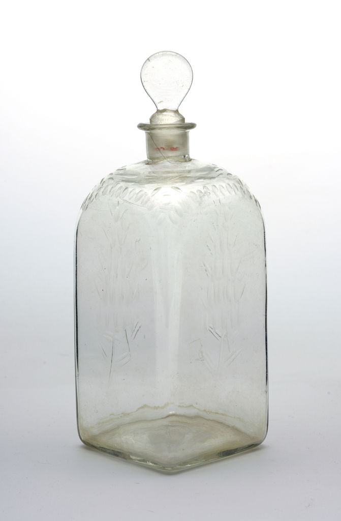 This is a Bottle and stopper. We acquired it in 1972. Its medium is glass. It is a part of the Product Design and Decorative Arts department.